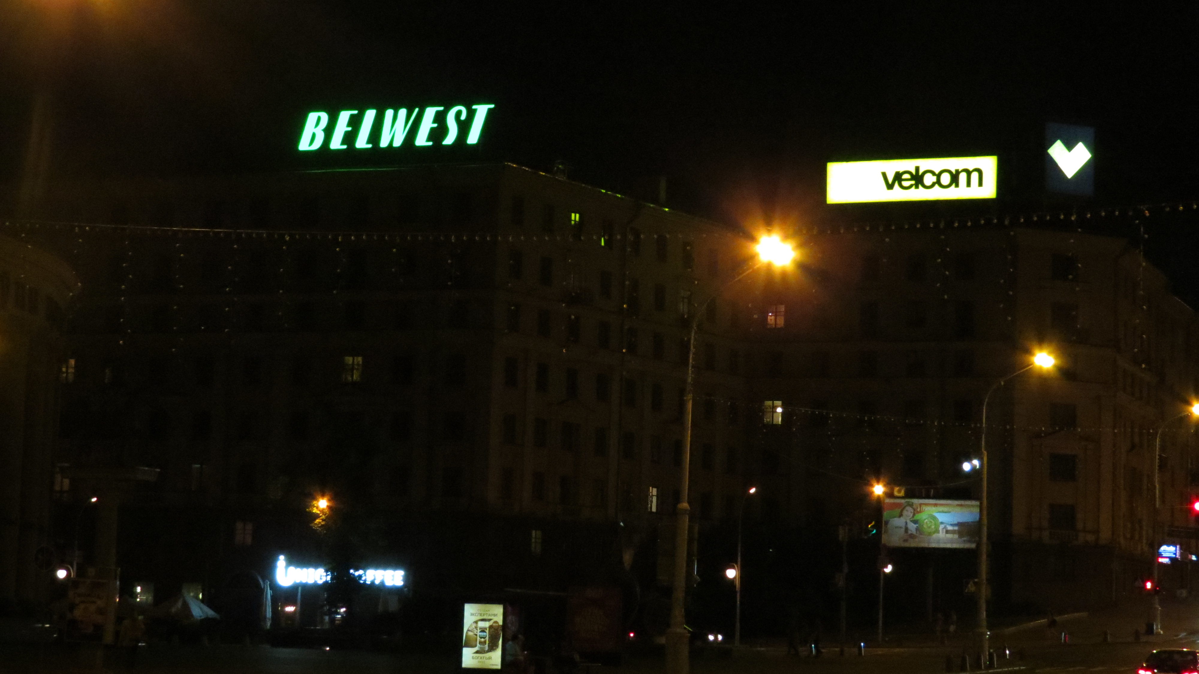 - Рекламный знак «BELWEST» состоит из объемных букв с внутренней светодиодной подсветкой, ~32,95 кв.м.